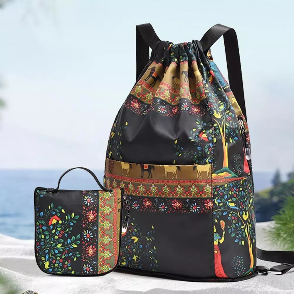 • 1×Drawstring Foldable Large Capacity Dry-wet Separation Travel Sports Backpack